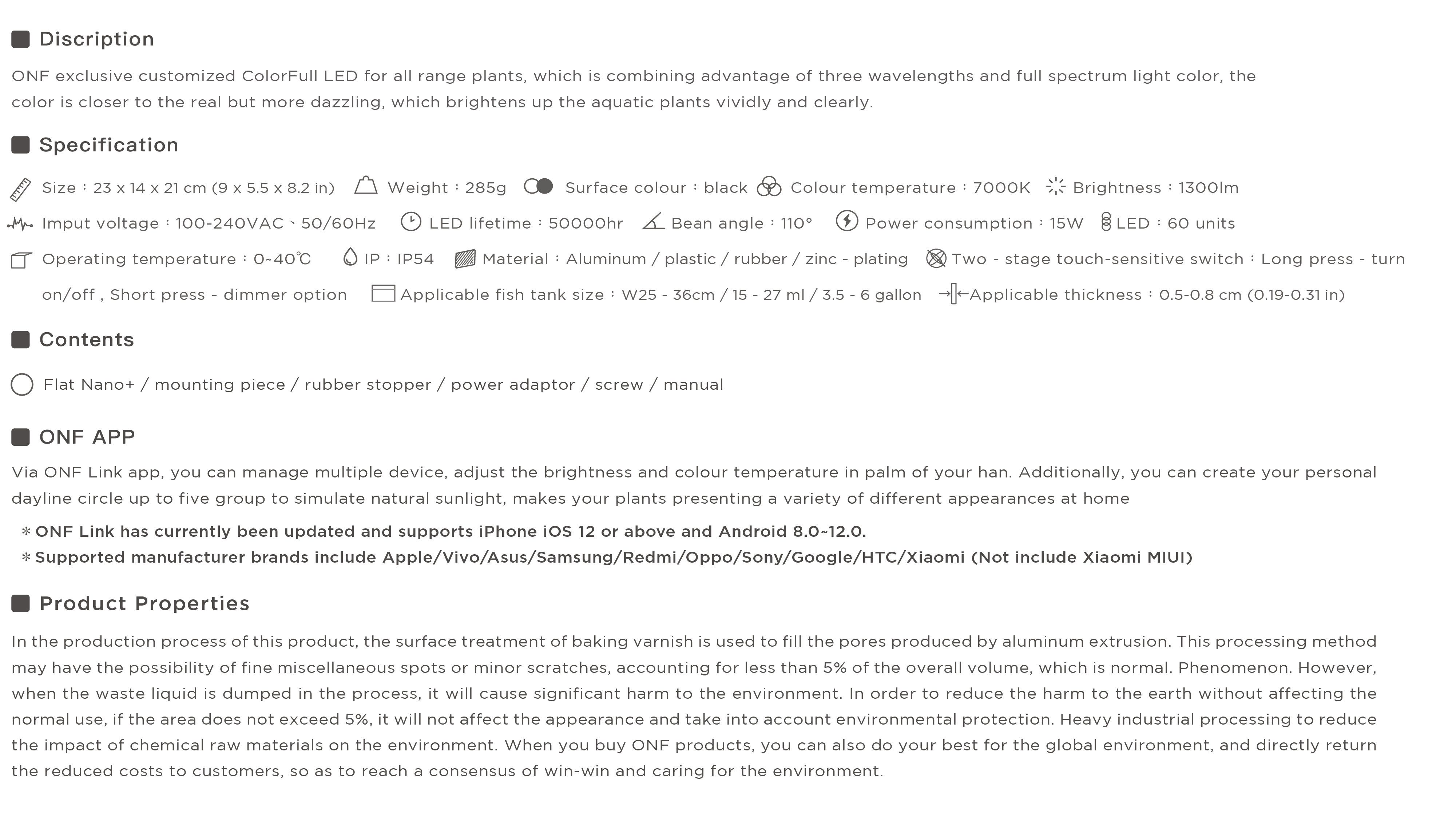 .Compatible with ONF LINK app for personalized five-stage brightness/CCT timer.