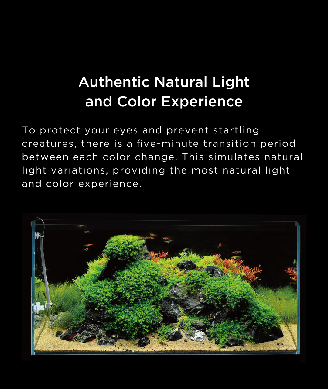 Flat One+ is a smart light designed for aquarists, tailored to the growth needs of aquatic plants. Through the app, users can set five daylight cycle modes, adjusting personalized color temperature, brightness, and timing, making aquariums more integrated into daily life and energy-efficient.