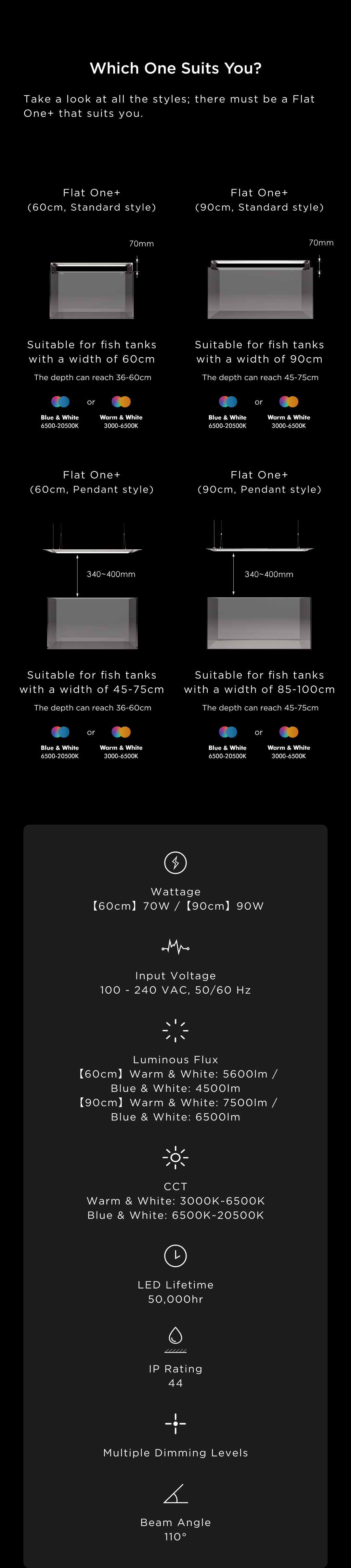 【Flat One+】The Smart Aquarium Lighting (90cm, Pendant style)