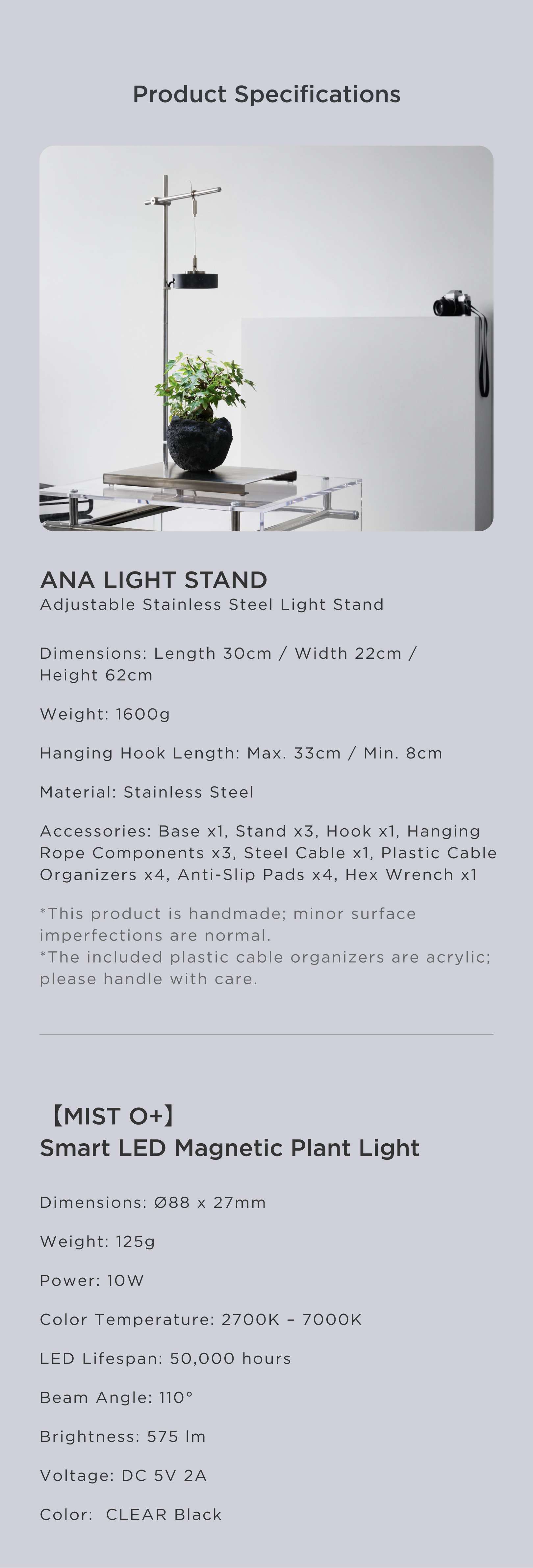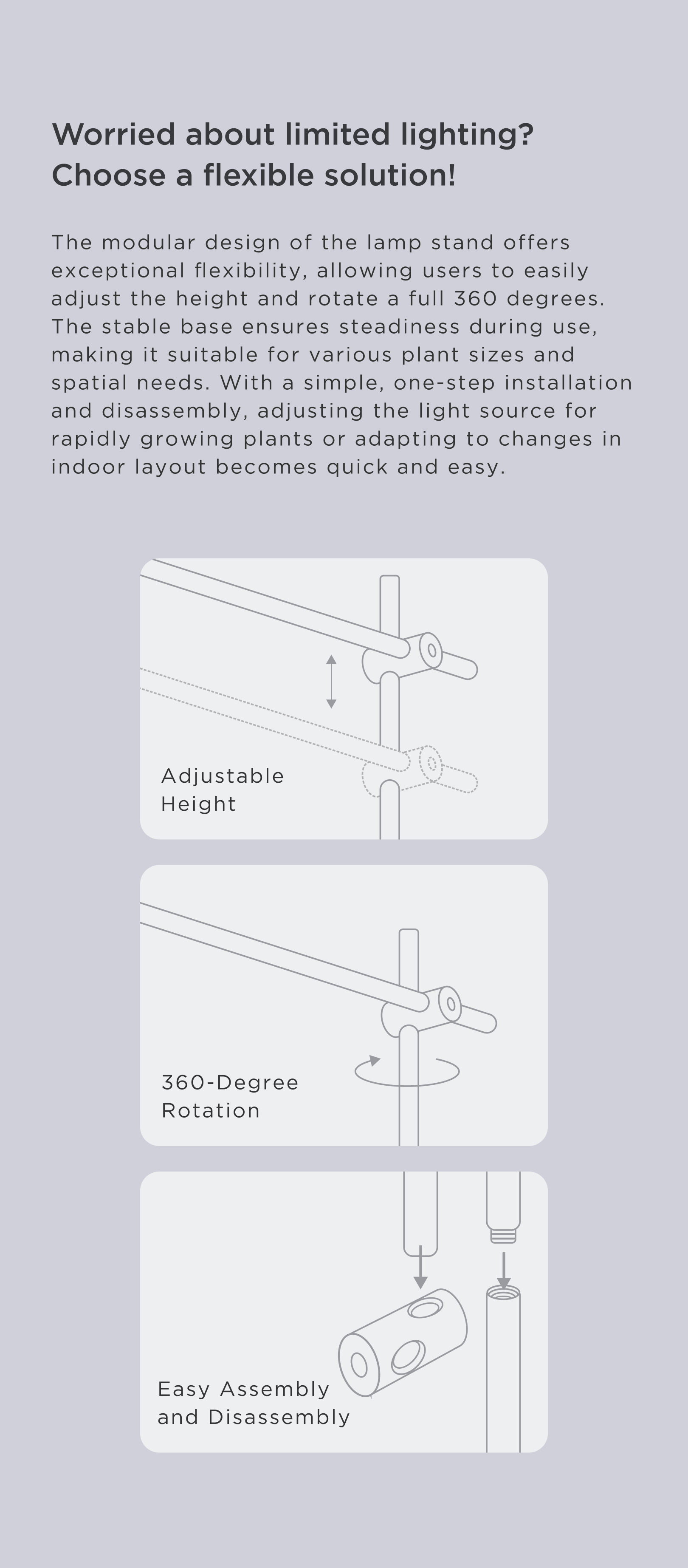 ∙ Adjustable height and horizontal distance for optimal lighting placement