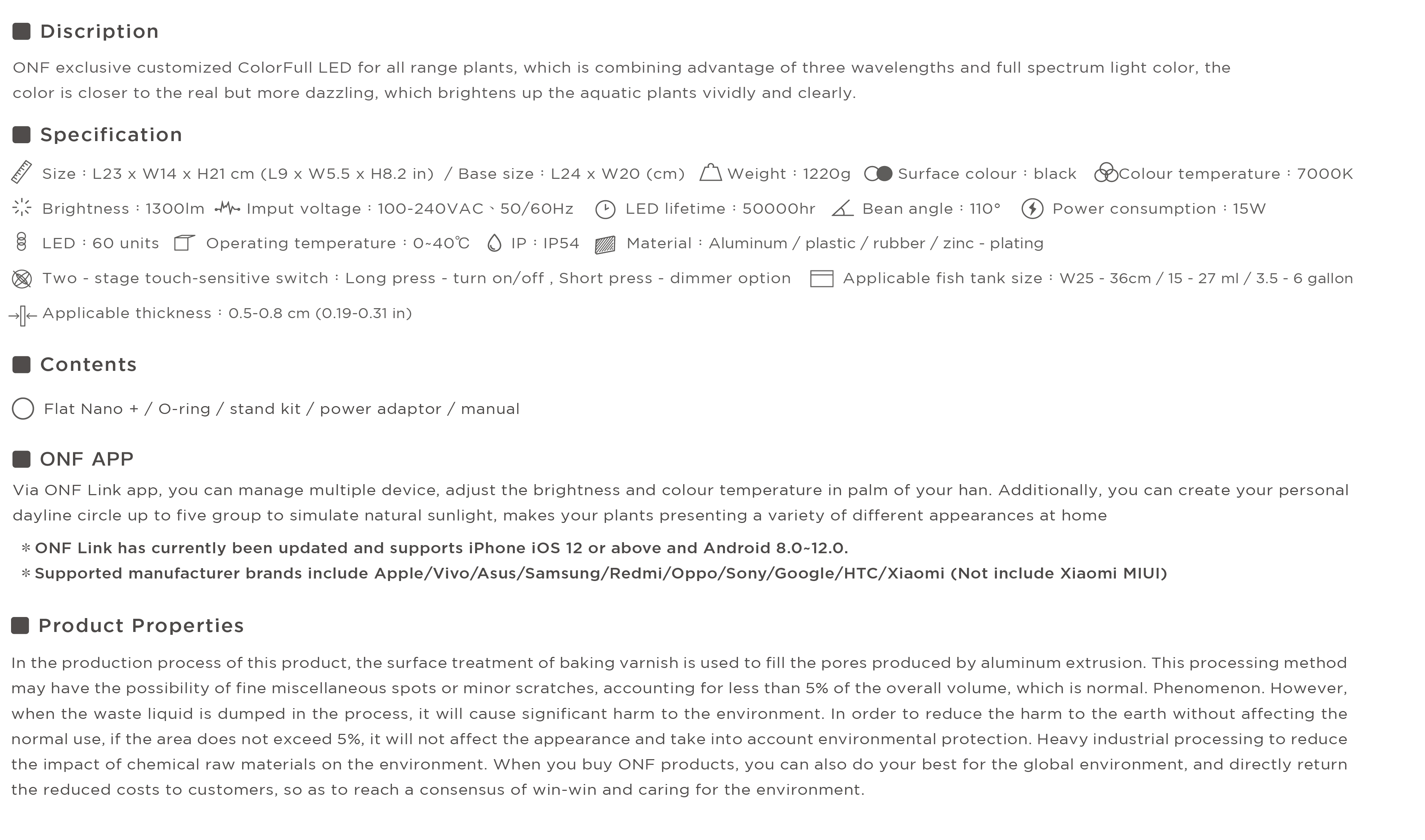 .Compatible with ONF LINK app for personalized five-stage brightness/CCT timer.