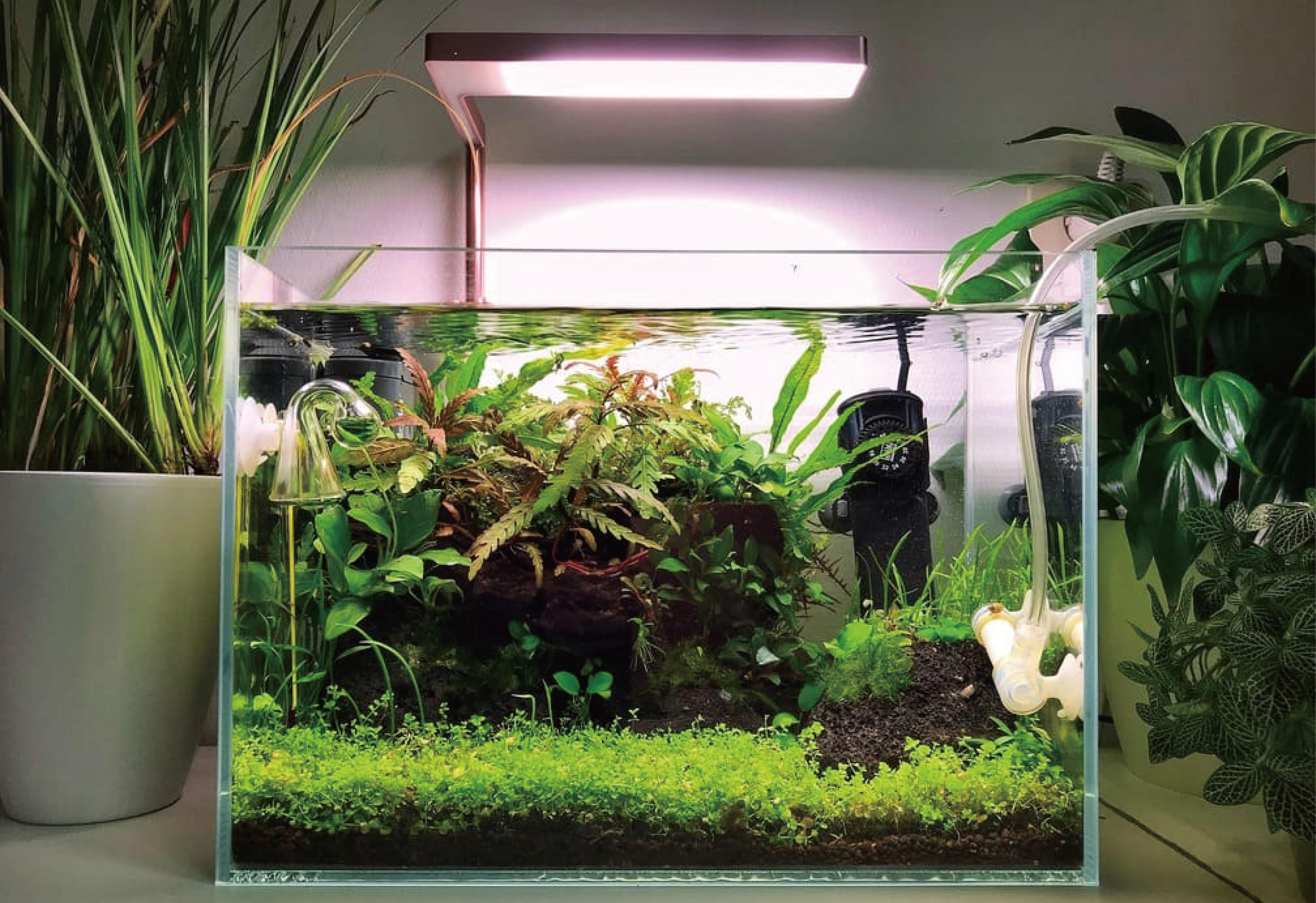 Isabella Vianello, aka Greenaquascaper, is an Italian and German aquascaper, currently living in the Netherlands. “I have chosen ONF because of their impeccable range of products and because they always manage to find the perfect balance between stunning designs, quality and natural elegance. Aquascaping for me is where art, nature and creativity meet. I work by combining nature and modern life, bringing organic elements to our everyday experiences. I find that ONF perfectly reflects this philosophy and I warmly suggest their products to my fellow aquascapers. I am looking forward to applying to international aquascaping competitions in the future, being confident and happy to have ONF by my side. Two aspects I particularly love about my Flat Nano are the additional features, such as the dimmable brightness feature (100%, 75%, 50%, 25%) and how natural the light looks. The light optimally enhances and highlights the plants’ colours, while being very pleasant to look at. It creates a very tranquil and soothing environment, perfectly fitting into every aquascape and adding a special touch to every living space.