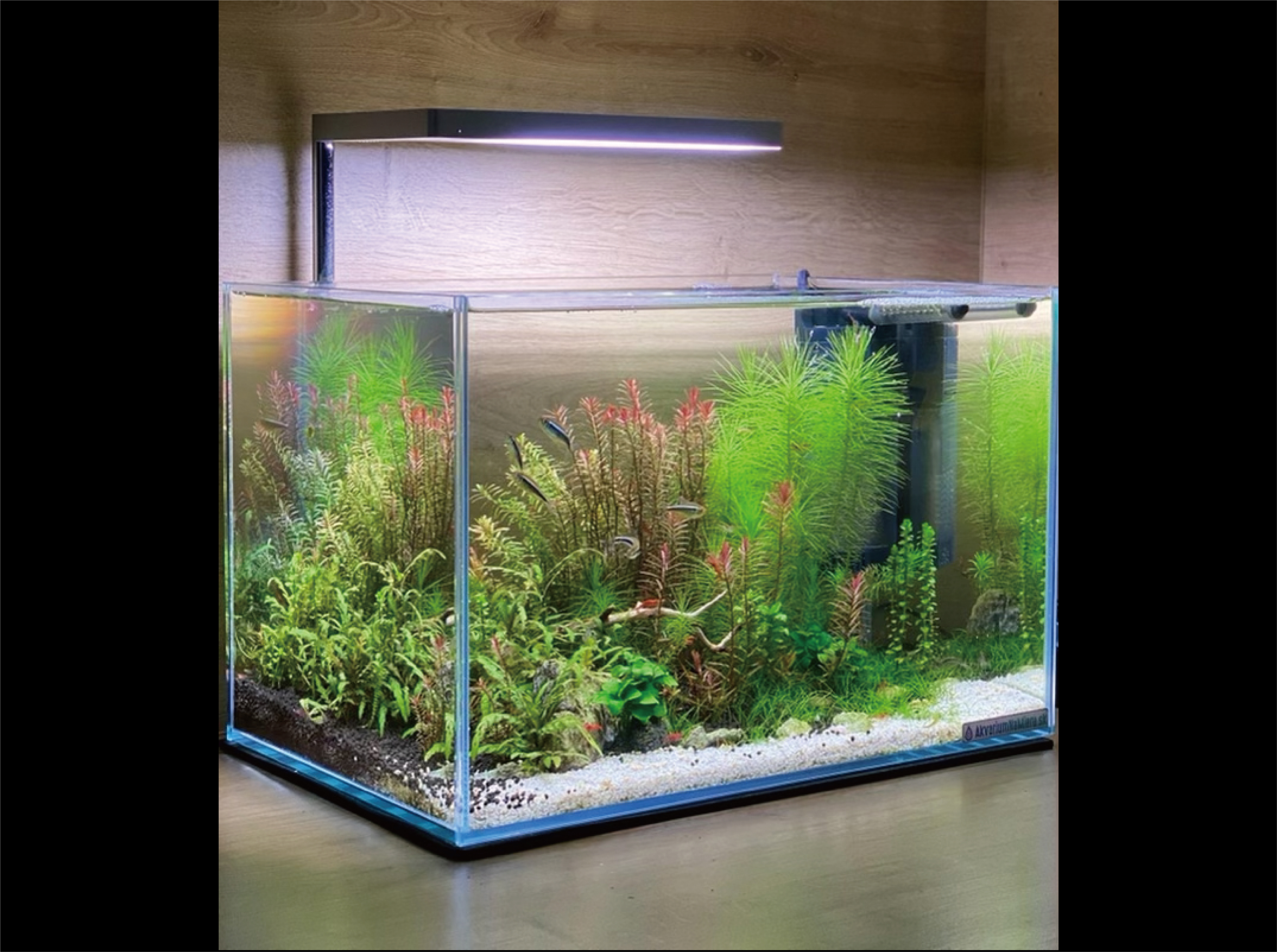This attractively designed light impresses not only by the integrated dimmer, which can be operated via an innovative touch control directly on the lamp, but also by the special features of the lighting. The colors of the plants are perfectly represented by the color spectrum of the LEDs and the slow increase in illuminance when switching on the lamp protects eyes and aquarium inhabitants. Vivid, bright but natural colours. Green is beautifully green. Fish and shrimp under this lighting look beautiful natural, deep colors