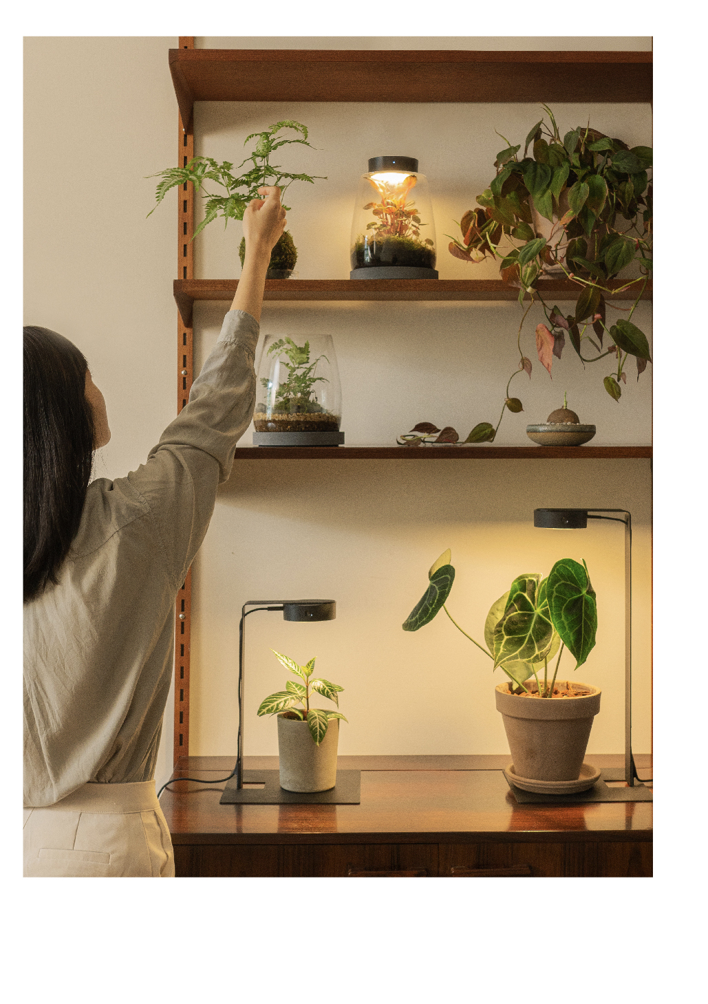 將植物培育燈具和諧地融入居家環境中,模組化配件讓使用範圍更加多元。