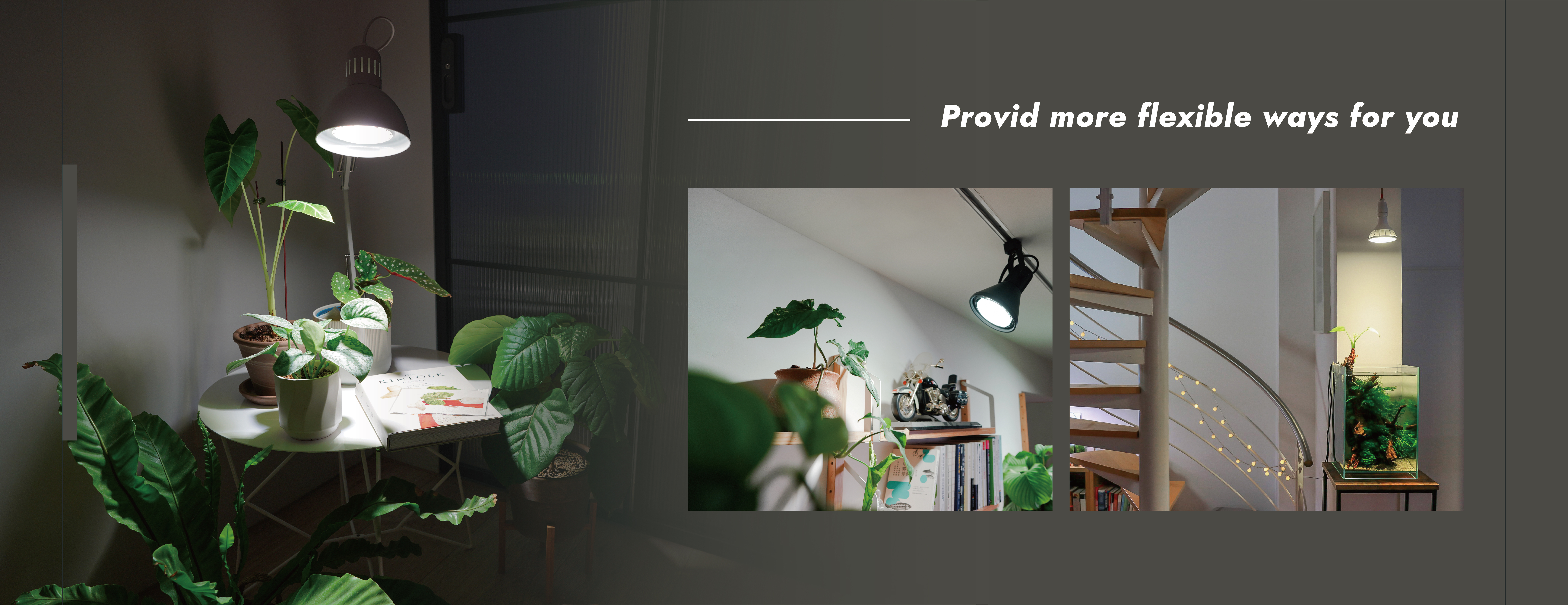 Using E26/E27 base, it is popular used in the market and can be applied to a table lamp, track light or ceiling light according to the field of use and plant needs, providing more flexible ways of use.