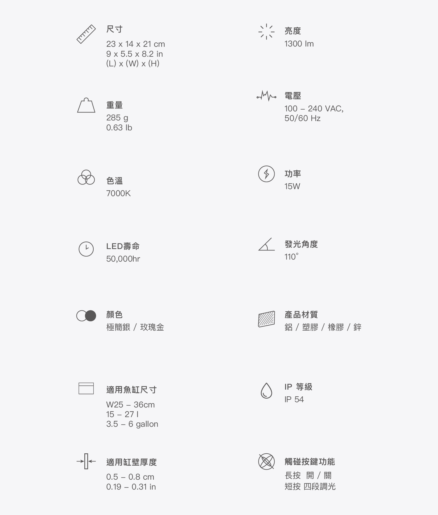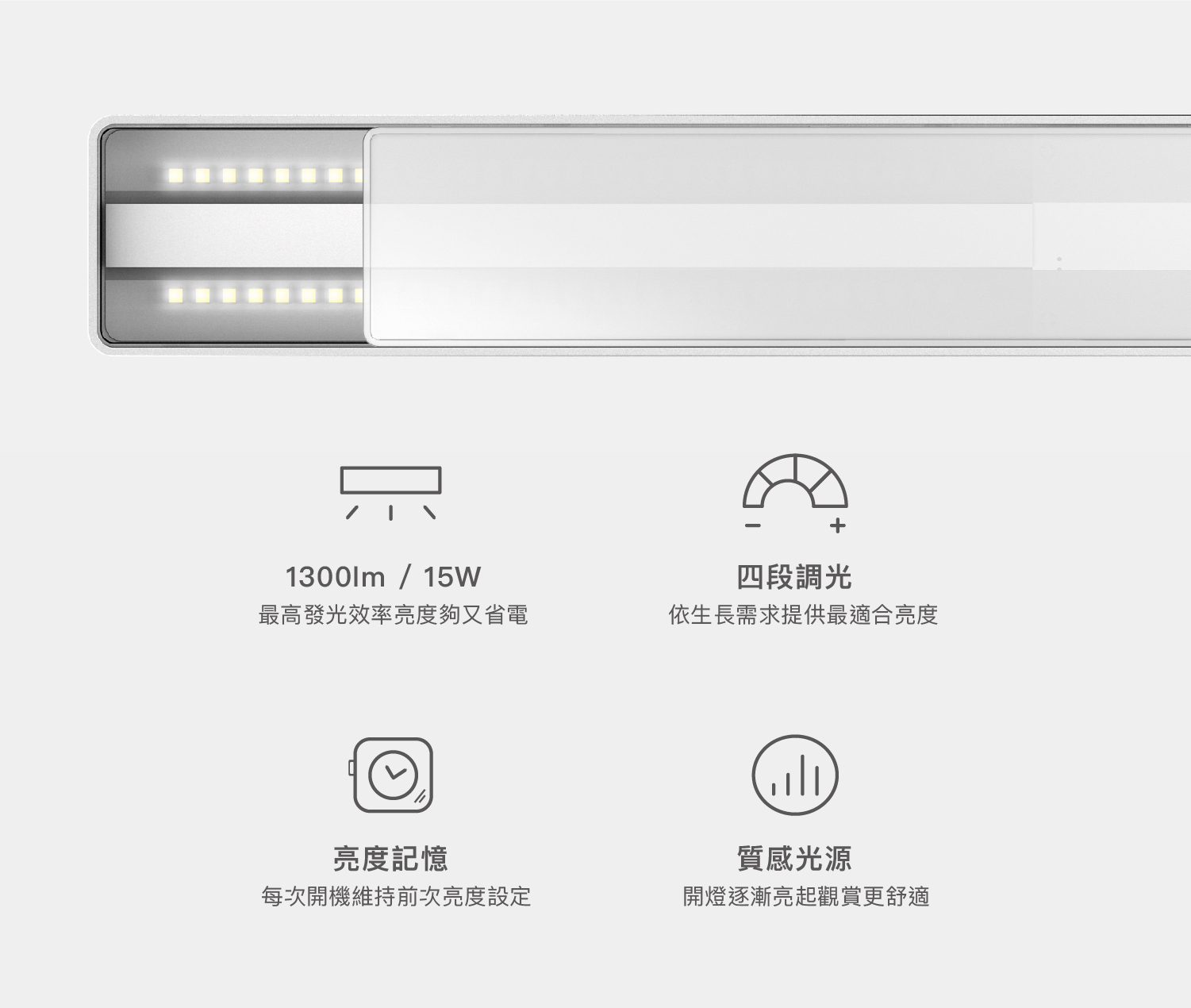 .以植物的生長方式及使用者體驗為出發點,即使植物持續向上生長,可無段式升降,騰出植物的生長空間(22.5~36cm)。