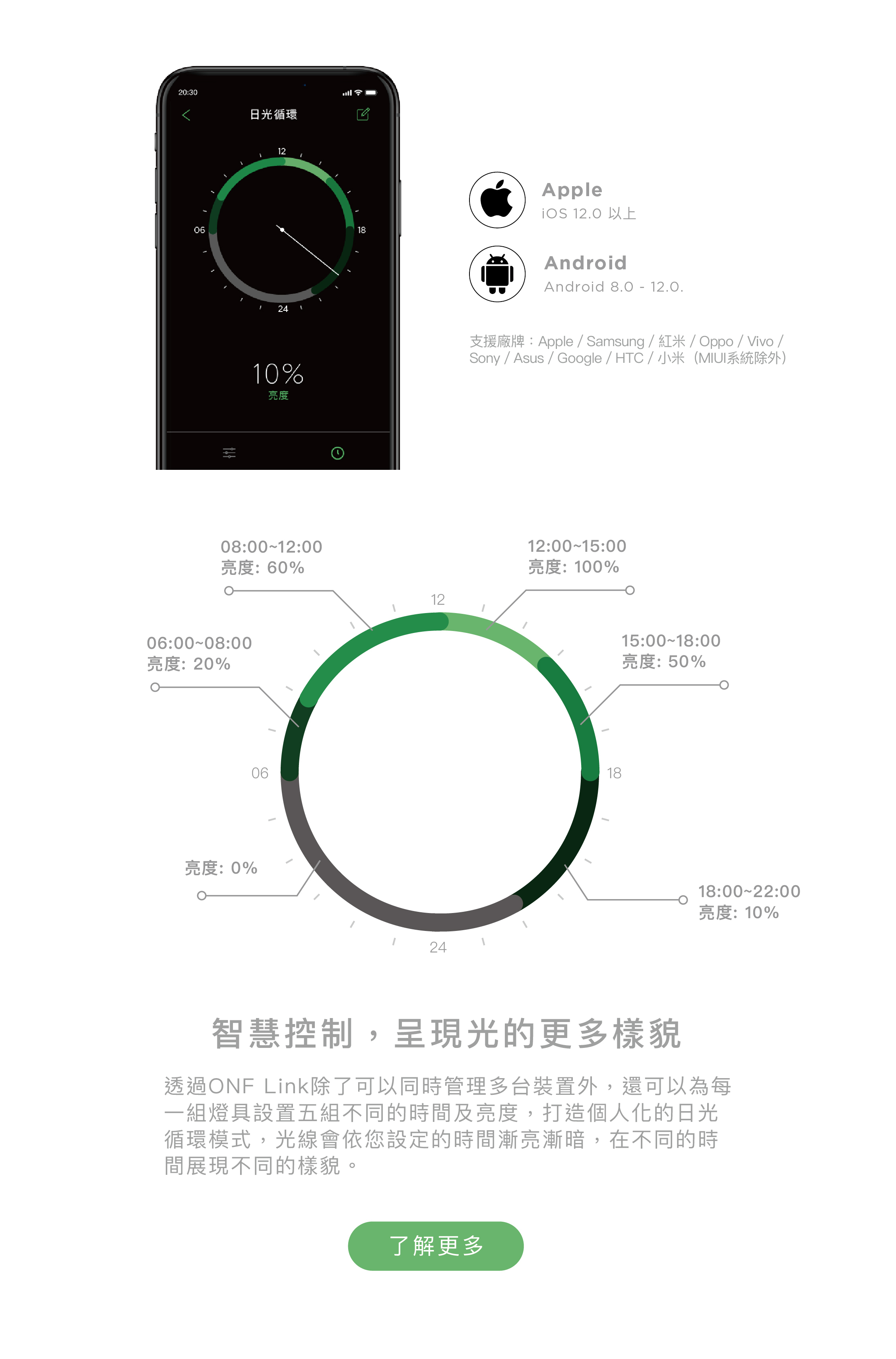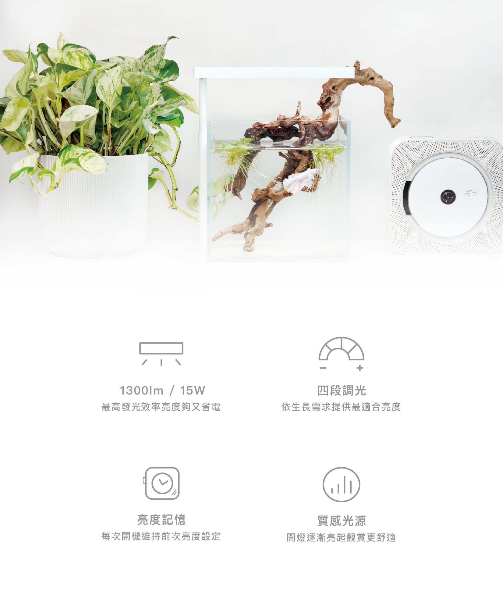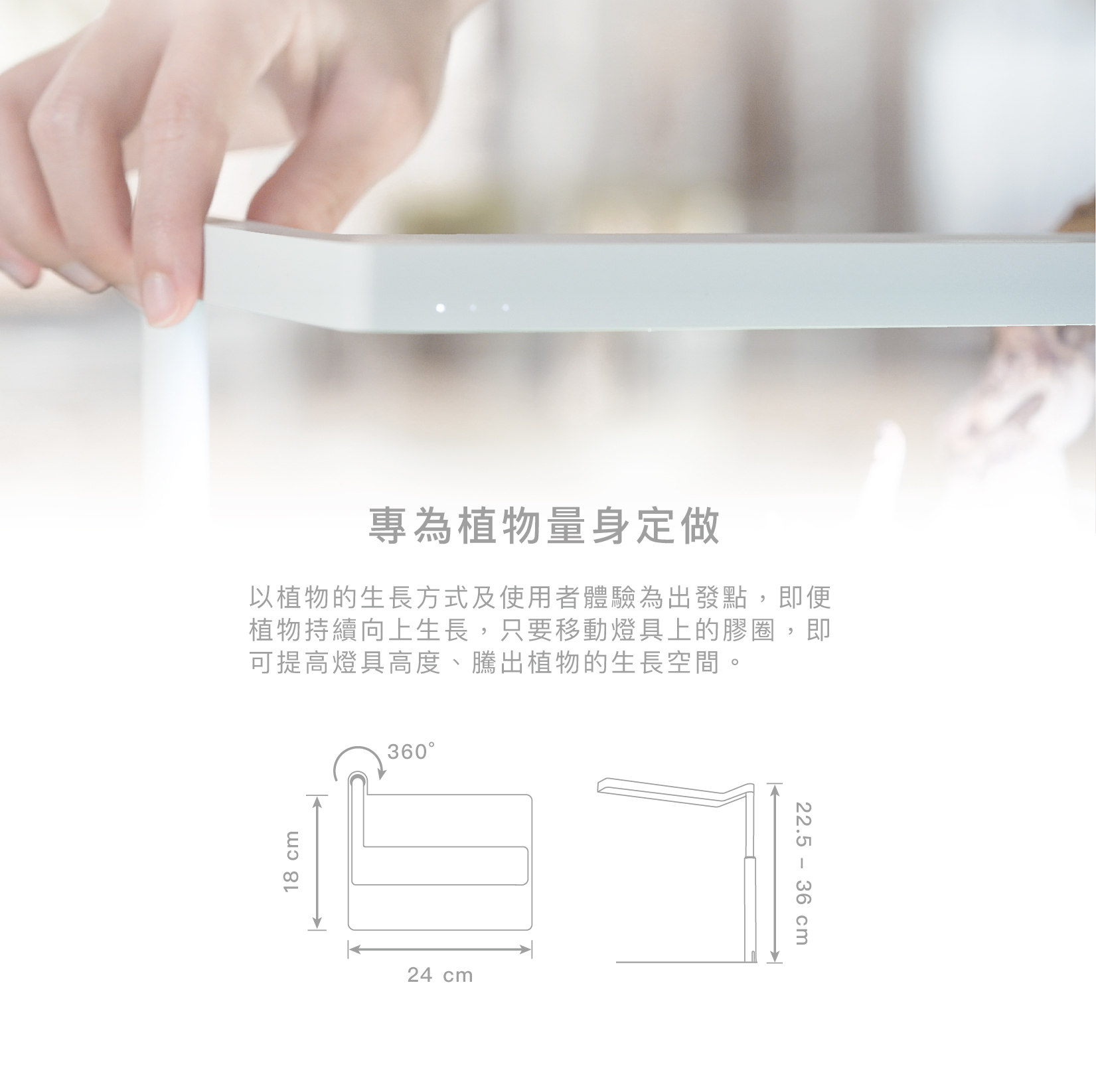 Flat Nano+ 是專為所有植物喜好者而設計的智慧照明工具,提供最高效的發光效率,讓植物在室內有效進行光合作用,使植物顏色更加鮮豔且狀態更為健康。擁有與 Flat Nano相同的優點外,還能使用App設置多組不同的亮度變化,打造個人化的日光循環,讓您的植物在室內展現不同的樣貌。